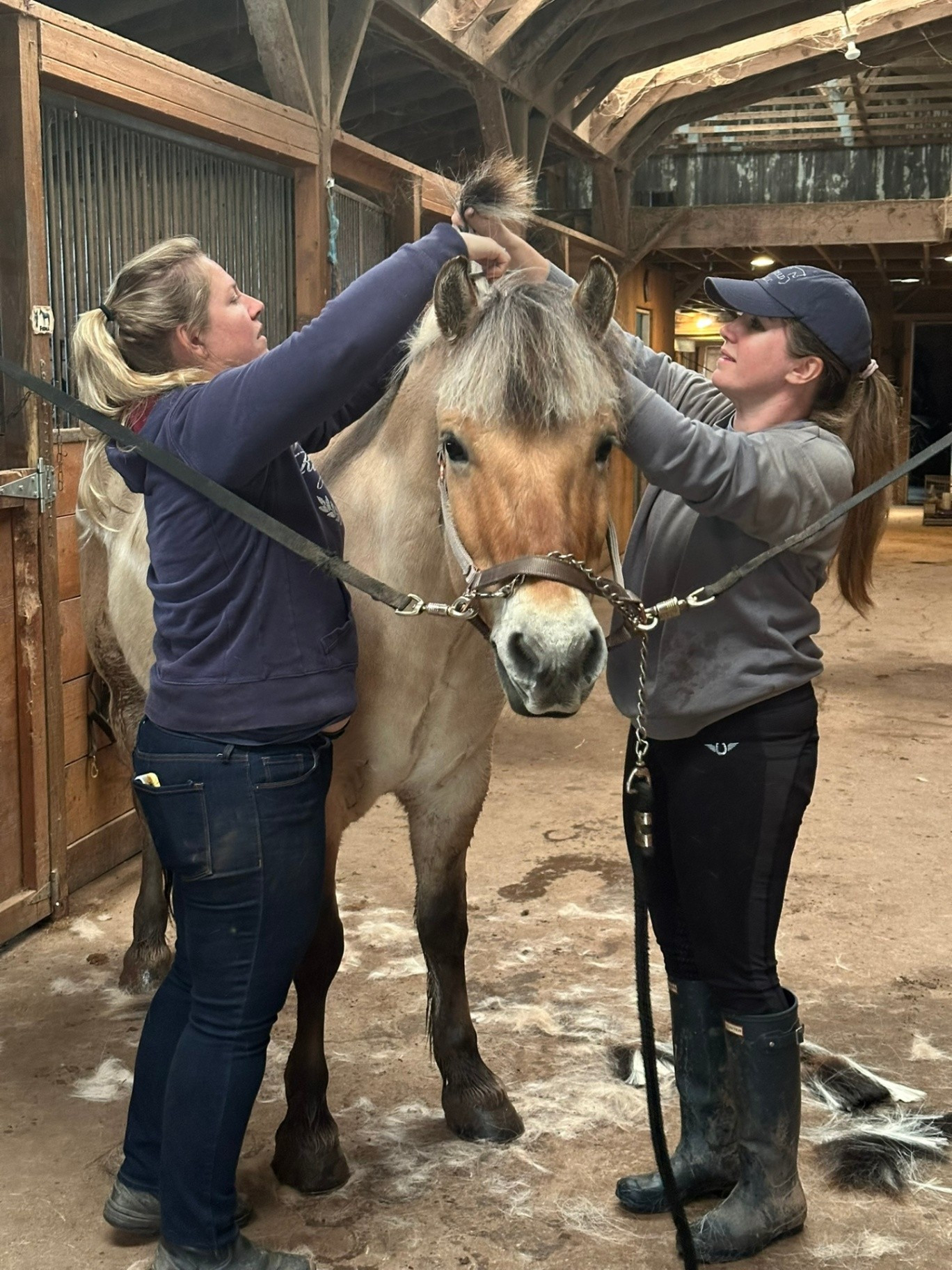 Misty is a teenage Haflinger and is the shortest of all of our horses. However, she makes up for her small size with her HUGE personality! Misty though small, is very strong and often carries our heaviest riders who need the most trunk support. Her smaller height allows her side walkers to easily assist her riders as needed. Misty loves treats and always checks her leader's pockets for any treats they may have forgotten to give her! She also loves her pasture mates Billy and Folly and can often be heard calling to them during lessons making sure they are not having too much fun without her.